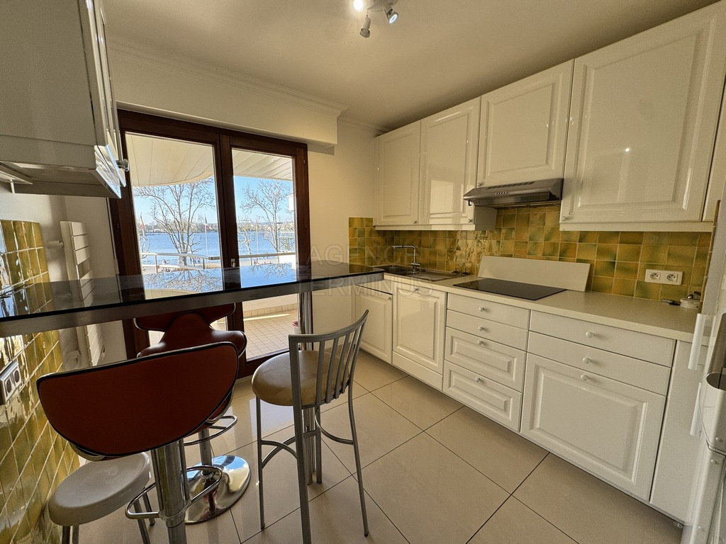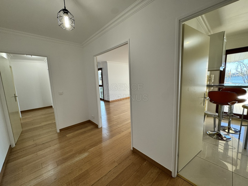 ENGHIEN LES BAINS, dans belle résidence de standing face au lac et à 2 minutes à pied des commerces, appartement en étage offrant: entrée, séjour double avec terrasse en front de lac, cuisine aménagée, dégagement avec placards, salle de bains, wc séparés, une chambre avec placard, terrasse, deuxième chambre avec dressing et salle d'eau / buanderie avec wc. Cave et deux parkings en sous-sol. Affaire rare !